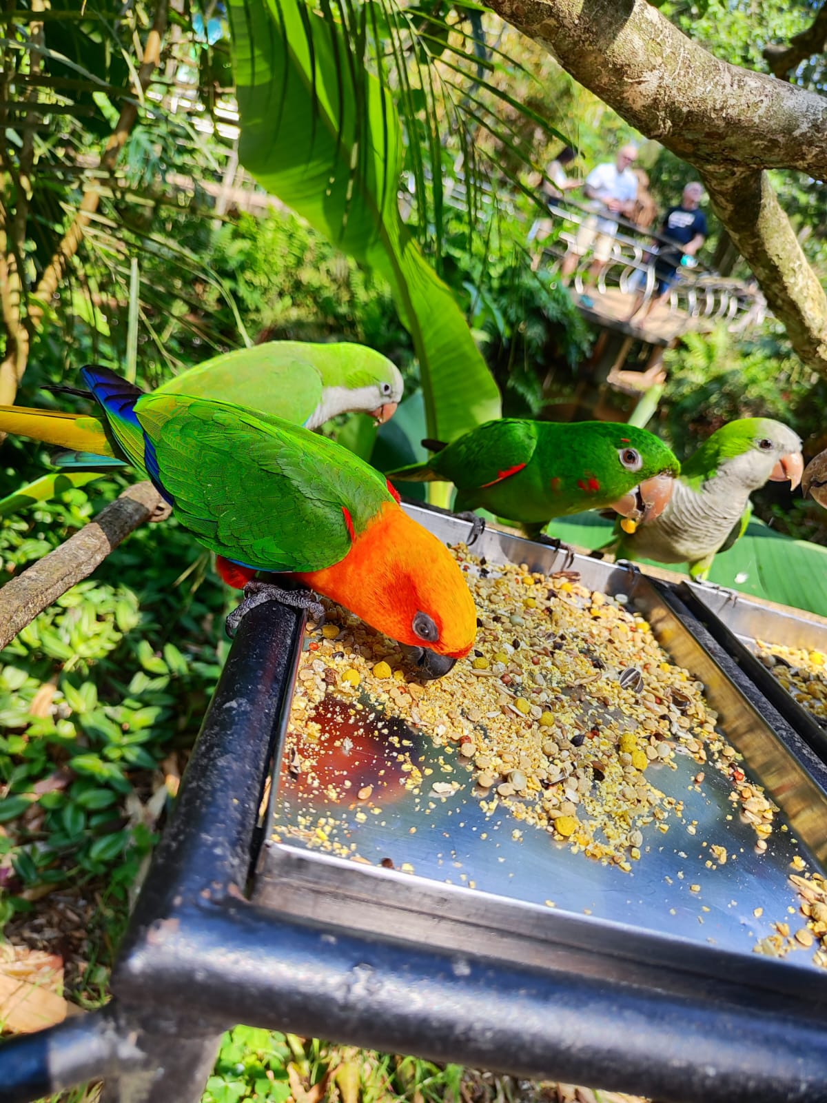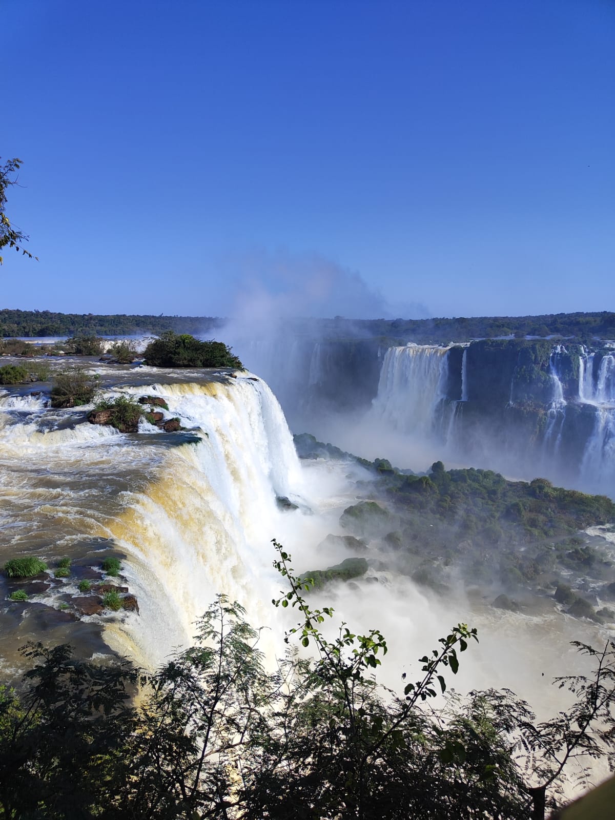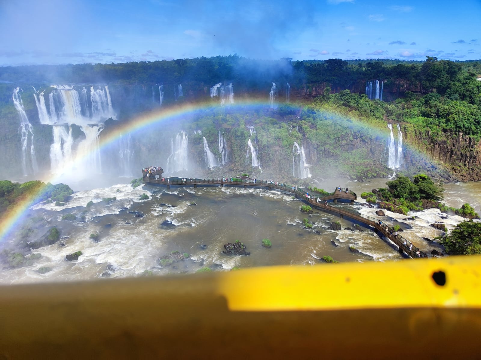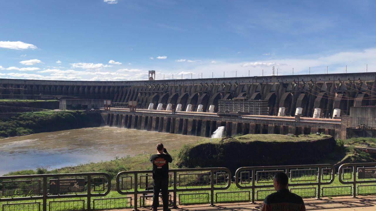 Luzes neon, motos, espetáculos aquáticos e arquitetura ao anoitecer.